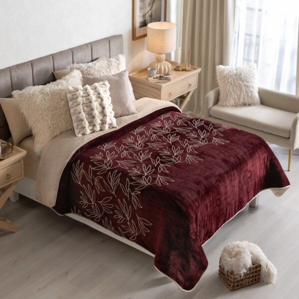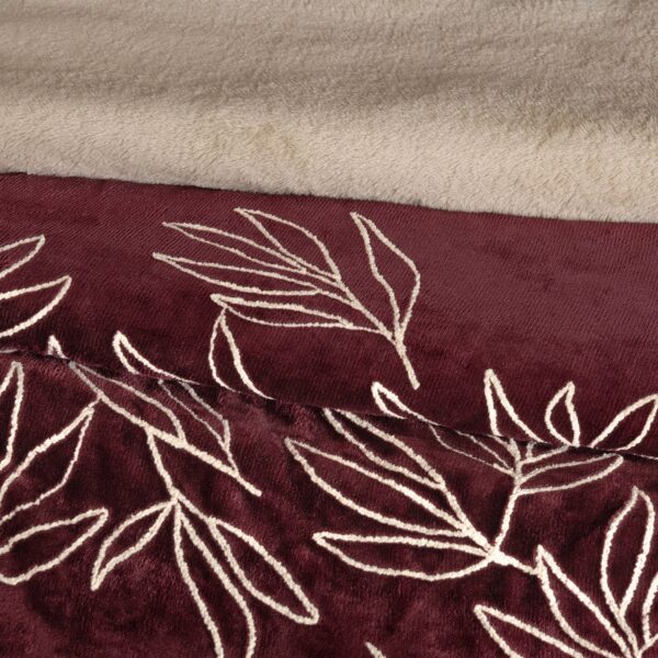 Cobertor austral con un exquisito bordado de hojas sobre tela Beautysoft, utilizando hilo de chenille para una textura suave y confortable y reverso de borrega premium. Este diseño no solo aporta un toque clásico, sino que también ofrece una experiencia de lujo y comodidad.