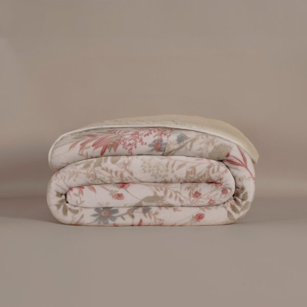 Cobertor invernal con primera vista de textura suave Beauty Soft y su segunda vista de borrega premium.