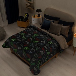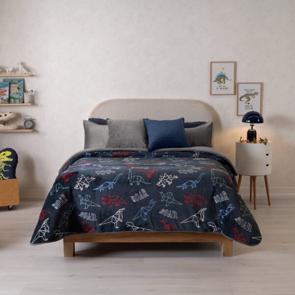 Cobertor invernal con primera vista de textura suave Beauty Soft y su segunda vista de borrega premium.