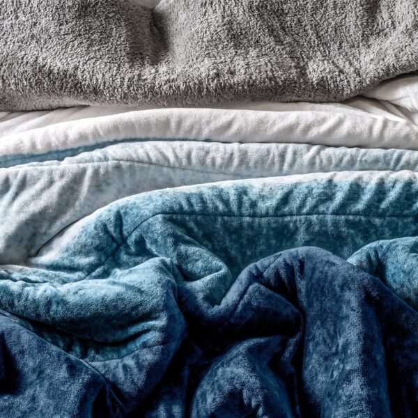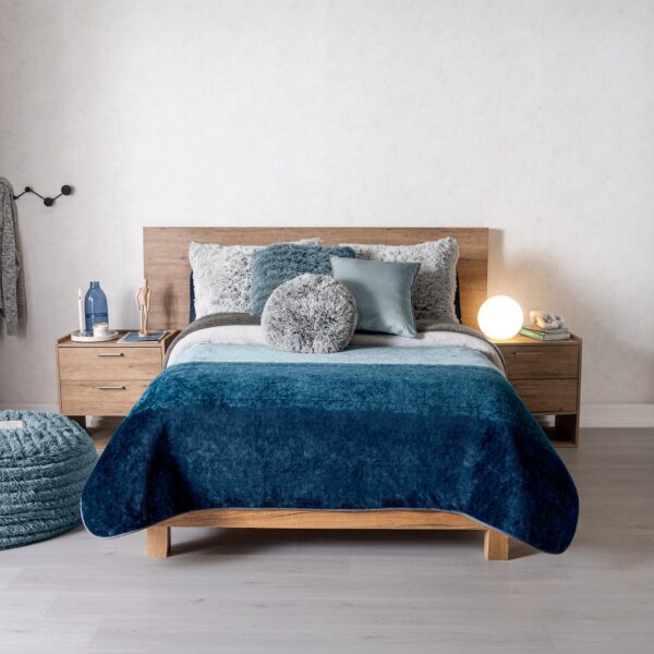 Cobertor invernal con primera vista de textura suave Beauty Soft y su segunda vista de borrega premium.