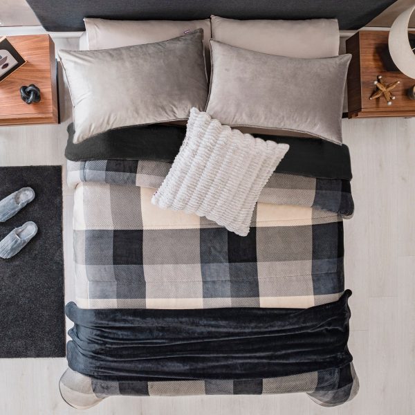 Cobertor invernal con primera vista de textura suave Beauty Soft y su segunda vista de borrega premium.