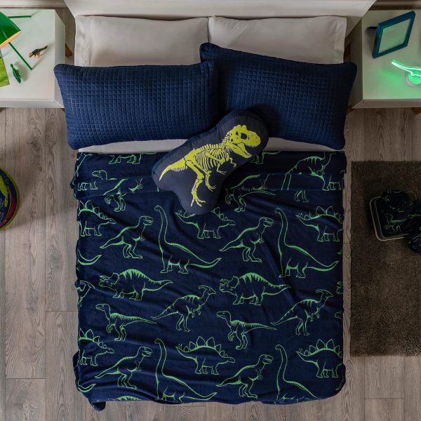Dale a tu pequeño una habitacion llena de aventuras, le encantará el cobertor Dinosaurios en color azul y con efecto que brilla en la oscuridad, agregará más diversión a su espacio.