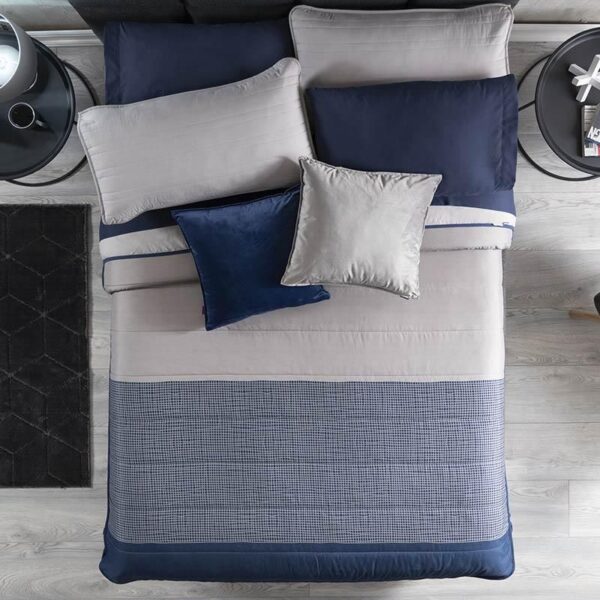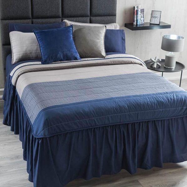 Colcha con holán estampado y capitonado especial, suave por su textura viasoft. Complementa con fundas y cojines.